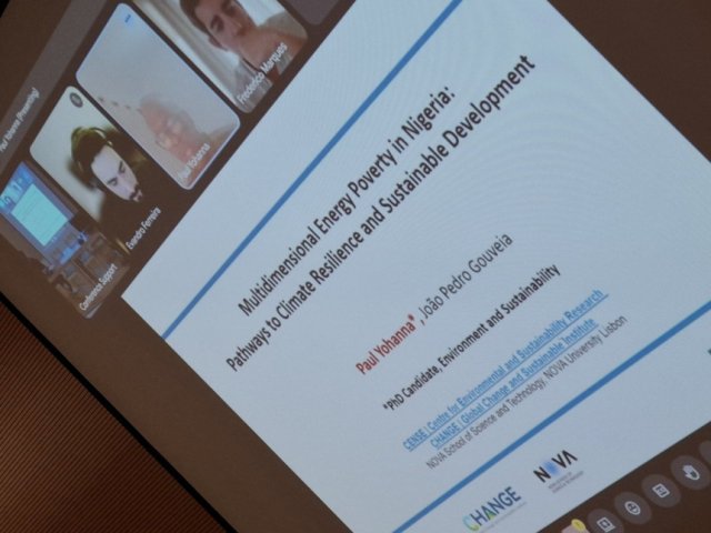Participating online, Paul Yohana (PhD. Cand., Nova, Portugal) presented his ongoing PhD work: "Multidimensional Energy Poverty in Nigeria: Pathways to Climate Resilience and Sustainable Development".