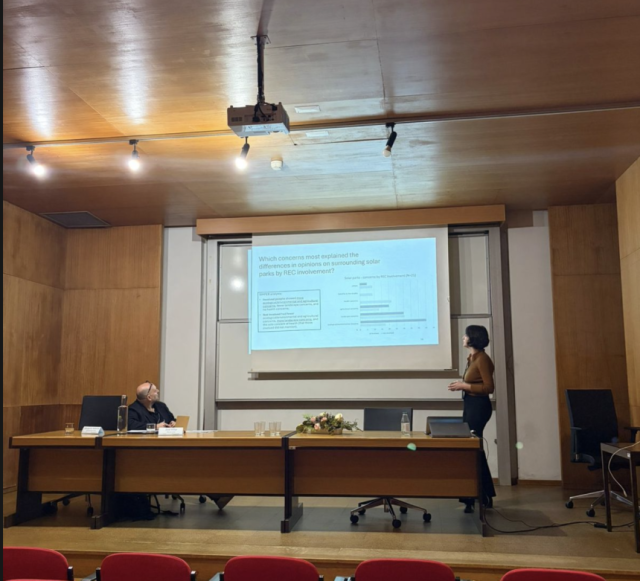 Carolina presented the paper "Implementing a Rural Renewable Energy Community Surrounded by Solar Farms: What are the Local Perspectives?" and the ”Analysing the integration of the social domain into energy policies - From the European level to the local and regional policy scales in Portugal" on behalf of Katherine Mahoney.